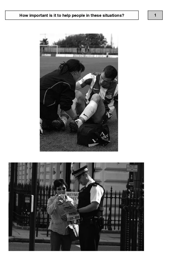 En la primera imagen, un asistente médico atiende a un jugador de fútbol lesionado en el campo. En la segunda, una mujer recibe una multa de un policía en la calle.
